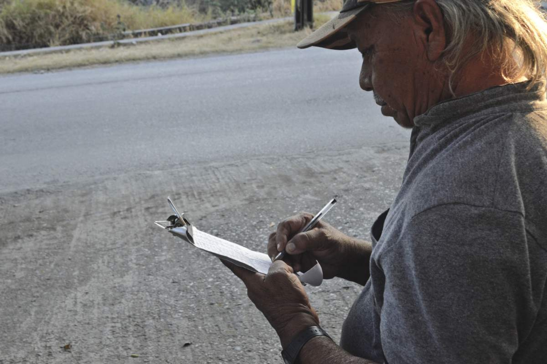 Desde hace más de tres décadas realiza este oficio, que ha ido cambiando conforme la sociedad y el transporte en Jojutla se han desarrollado, pero esencialmente se encarga de apuntar los tiempos y avisar a los conductores qué unidad va delante de él y qué tiempo le lleva.