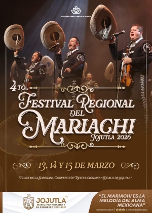 Jojutla.- El gobierno de Jojutla, que preside Alan Martínez García, invita a disfrutar la cuarta edición de uno de los eventos culturales más importantes de la región: el Festival Regional del Mariachi, que se realizará del 13 al 15 de marzo de 2026, en la Plaza de la Soberana Convención Revolucionaria (zócalo de Jojutla).