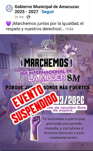 En el comunicado, las autoridades señalaron que esta actividad tenía como objetivo promover la participación y la unión de las mujeres de Amacuzac en el marco de la conmemoración del Día Internacional de la Mujer; sin embargo, indicaron que, por causas ajenas a la organización, se determinó suspender el evento.